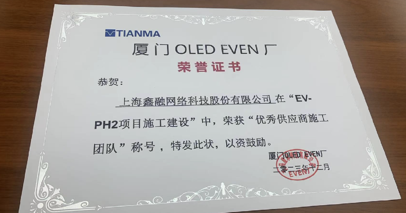 近日,廈門天馬顯示科技有限公司召開PH2-施工階段性總結會議,會議對第6代柔性AMOLED生產線項目的整體建設情況進行了階段性的總結,并評選了優秀供應商。鑫融網絡在“EVPH2項目施工建設”中,榮獲客戶頒布“優秀供應商施工團隊”稱號。天馬微電子(股票代碼000050),是一家集液晶顯示器研發、設計、生產、銷售和服務為一體的