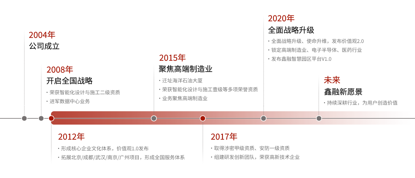 鑫融網絡成立于2004年,是一家擁有多項行業甲級資質的高新技術企業,專注于為產業用戶提供信息系統、智慧安防系統、多媒體系統、智慧廠務管理系統、綜合管理平臺及數據中心建設。公司擁有注冊建造師、中高級工程師、注冊造價師等40余人的項目管理團隊,研發、設計、技術服務人數占比超過40%;經過多年的耕耘,公司具備全國服務能力,積累了大量的行業用戶與案例,擁有豐富的設計、實施、管理、運營服務經驗,可以為用戶提供全生命周期的項目服務。